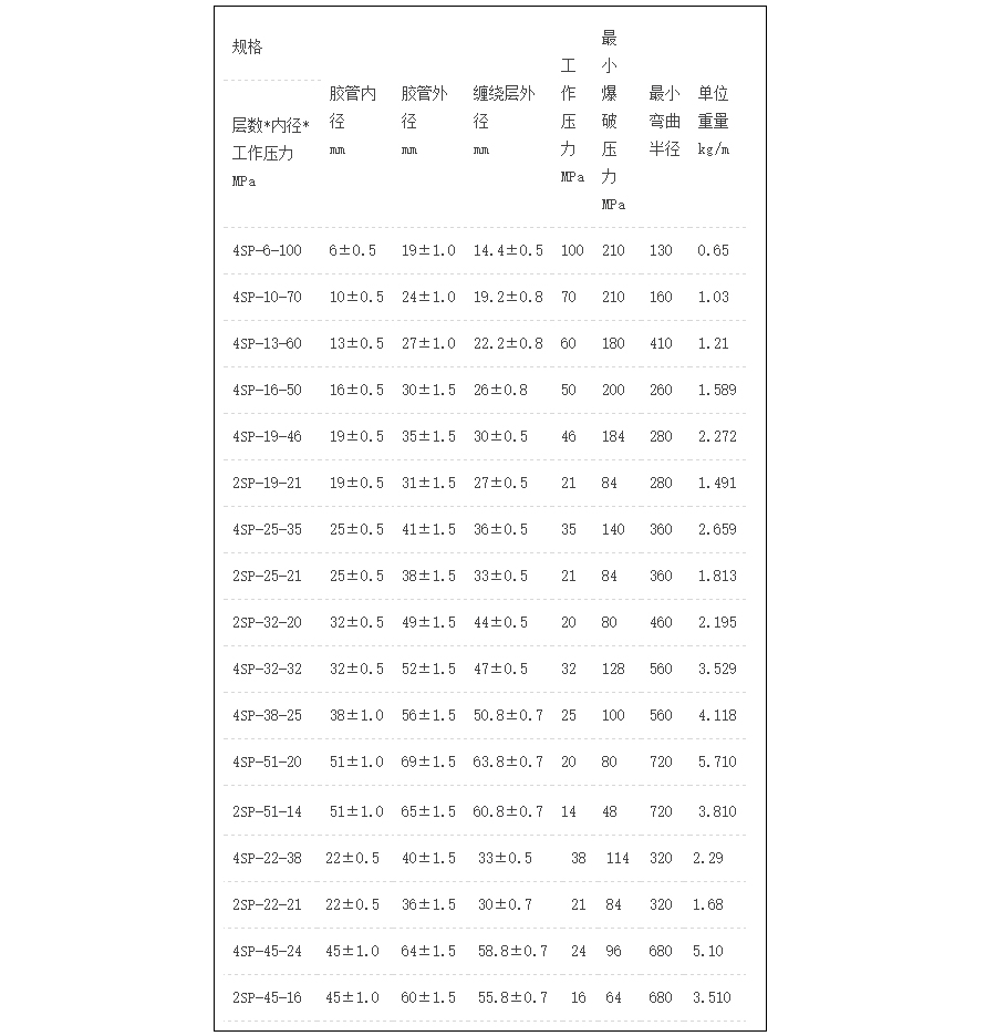 注:本企業纏繞膠管標準參照GB/T10544-03標準,DIN2003,SAE100R9、R