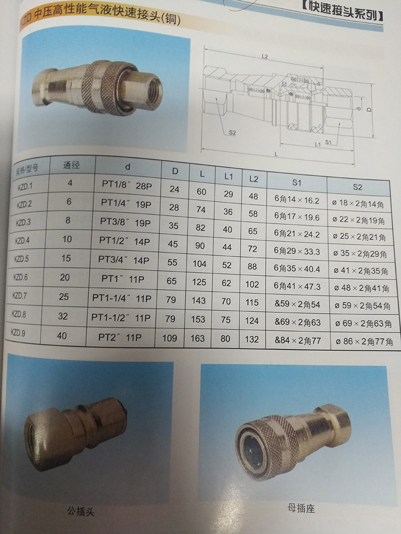 • 產品名稱: KZD中壓高性能氣液快速接頭(銅)