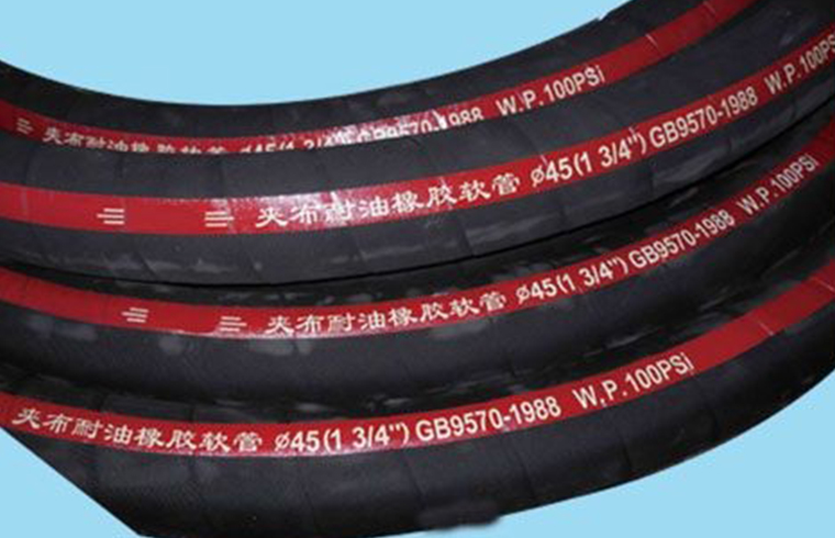 產品結構:耐油夾布膠管是由良好NBR內膠層、多層纏繞或編織增強層、中間連接膠層、耐磨耐老化外膠層(如果有導靜電需要,內膠層可選導電炭黑增強或在膠管內置導電銅線)。